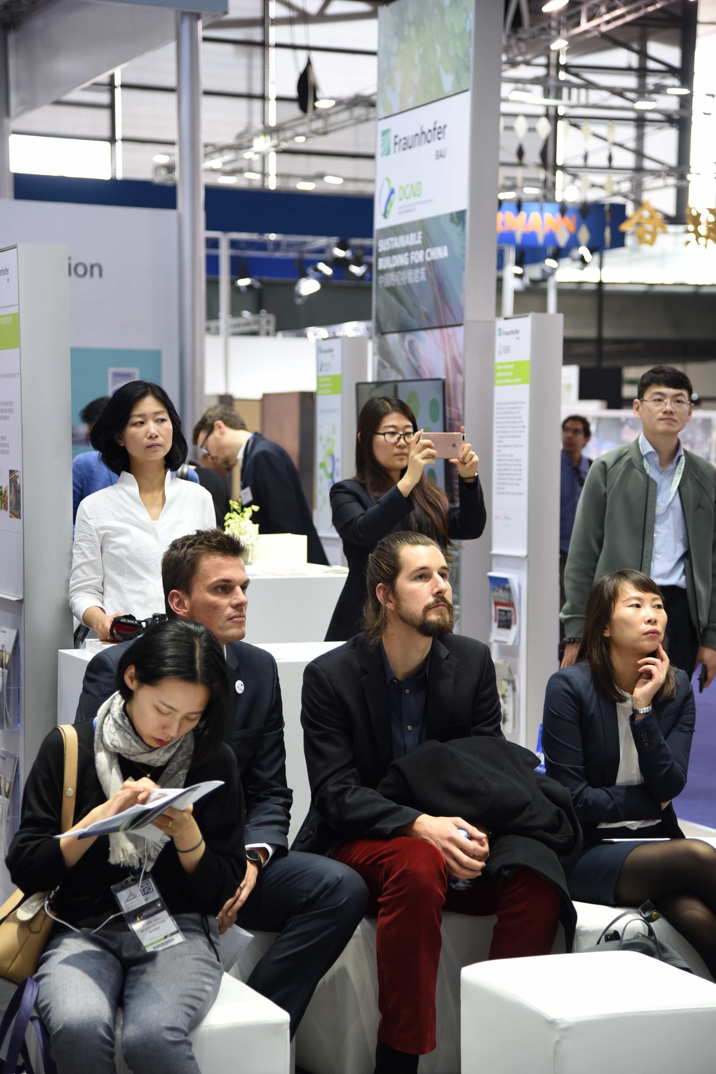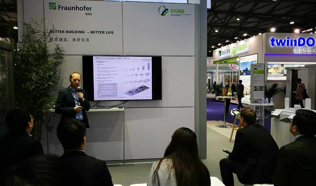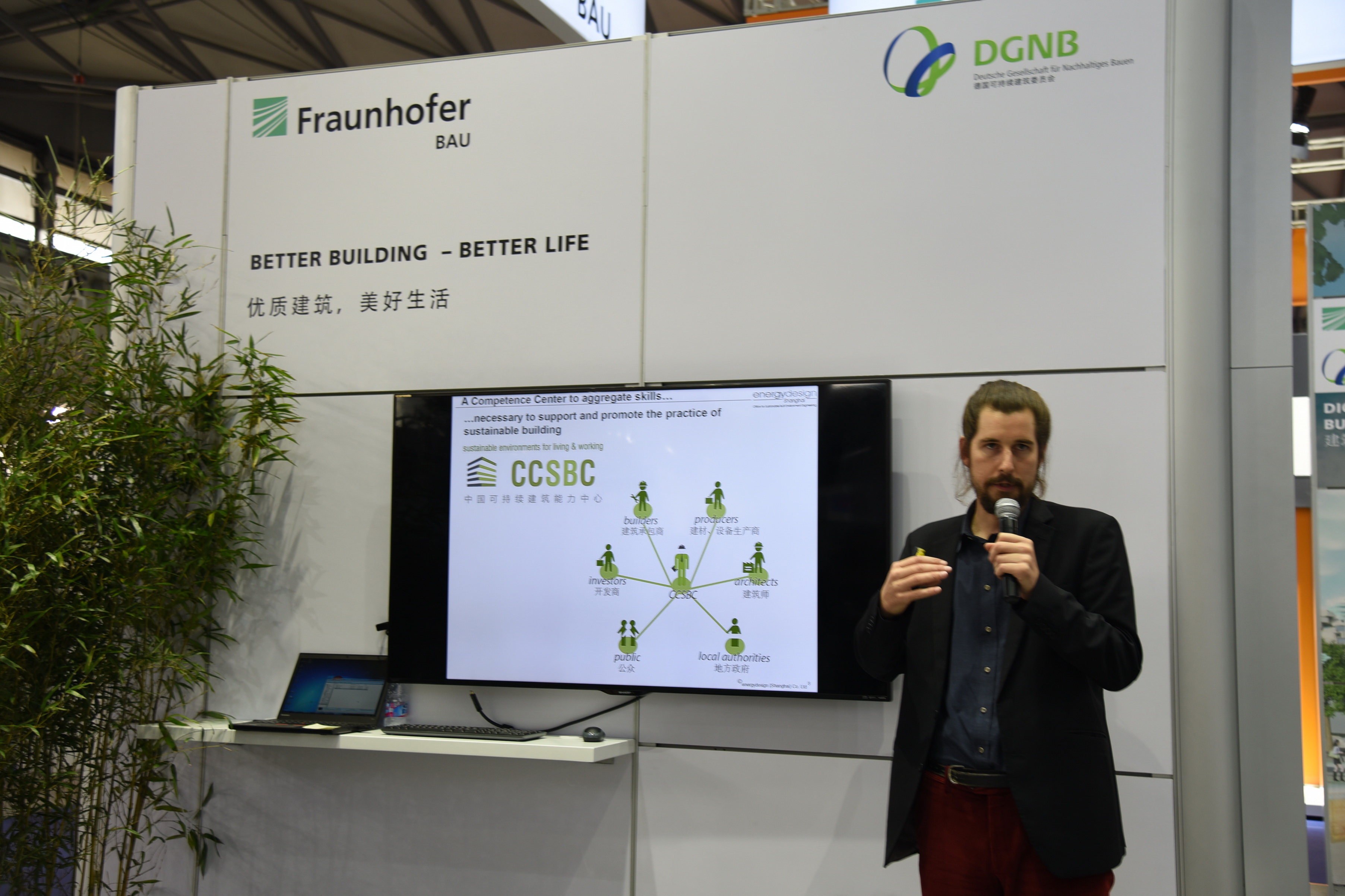 与此同时,设能公司的Joseph van der Elst(代表德国国际合作机构GIZ)和Sebastian Schulz受邀在Fraunhofer 弗劳恩霍夫创新平台展厅分别就“CCSBC可持续建筑能力中心在中国的实践案例”和“建筑和城市的可持续设计中地理信息工具系统GIS的应用”发表演讲。