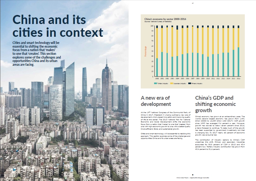 中国的城市人口正在增长:59%的人口已经在城市生活。到2050年,这一数字预计将增加到80%。中国政府正在推动智能城市的发展,已计入约500个试点项目。崭新的、可持续的移动解决方案,分布式能源生成,自动化废物管理,个性化医疗保健,数字集成 - 这些是中国城市未来发展的关键,也为德国高科技公司提供商机。